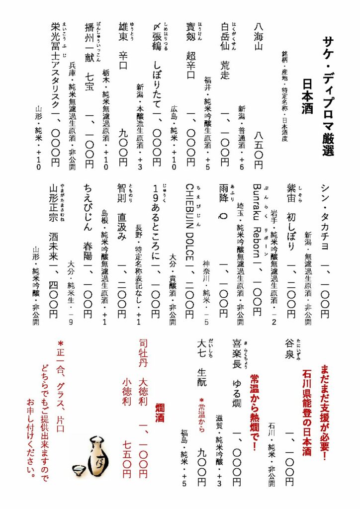 2025/11/17 酒ディプロマ推奨日本酒更新しました ※11月24日㈷はお休みをさせていただきます。 SNSでもお知らせ配信しています。以下のアカウントのフォローお願いします。 ▼あぶり処武蔵Instagram ▼あぶり処武蔵Facebook 前の記事へ ニュース一覧へ